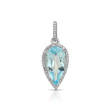 14KT White Gold Blue Topaz Diamond Pear Drop Charm