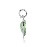 Elevate your style with this 14KT white gold charm featuring a dazzling green amethyst in a graceful pear drop shape. Accented by a sparkling diamond, this piece embodies refined elegance and adds a subtle pop of color to any ensemble. It is designed with our signature clip-on enhancer bail that easily attaches to almost any link, ensuring versatile styling options. Listen for the satisfying "click" to confirm it is securely fastened, offering both elegance and peace of mind in wear.