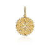 14KT Yellow Gold Diamond Compass Medallion Charm with Diamond Clip on Bail