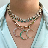 Our best-selling lunar charm just got an upgrade. Now available with a new diamond clip on bail you can open and clip onto a chain link.