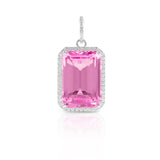 18KT White Gold Diamond Pink Topaz Luxe Jolly Charm Pendant with Diamond Clip on Bail