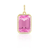 18KT Yellow Gold Diamond Pink Topaz Luxe Jolly Charm Pendant with Diamond Clip on Bail