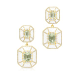 14KT Yellow Gold Green Amethyst White Enamel Diamond Deco Earrings