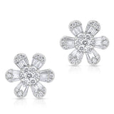 14KT White Gold Baguette Diamond Luxe Large Daisy Earrings