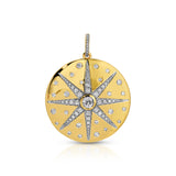 14KT Yellow Gold Diamond White Topaz Sunburst Charm w/ Diamond Clip on Bail