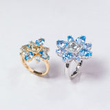 Introducing our 14KT White Gold Amaryllis Ring, featuring a delicate flower design with breathtaking blue topaz and green amethyst stones. A timeless and sophisticated piece that will surely make a statement and become a treasured addition to your collection.