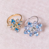 14KT White Gold Blue Topaz Green Amethyst Diamond Luxe Amaryllis Ring