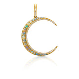 14KT Yellow Gold Opal Diamond Lunar Charm Pendant with Diamond Clip on Bail